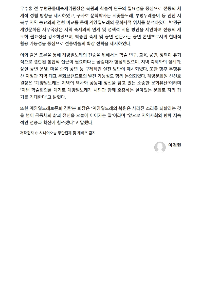 시니어오늘) 인천 계양의 노동요를 지역 문화 자산으로...
