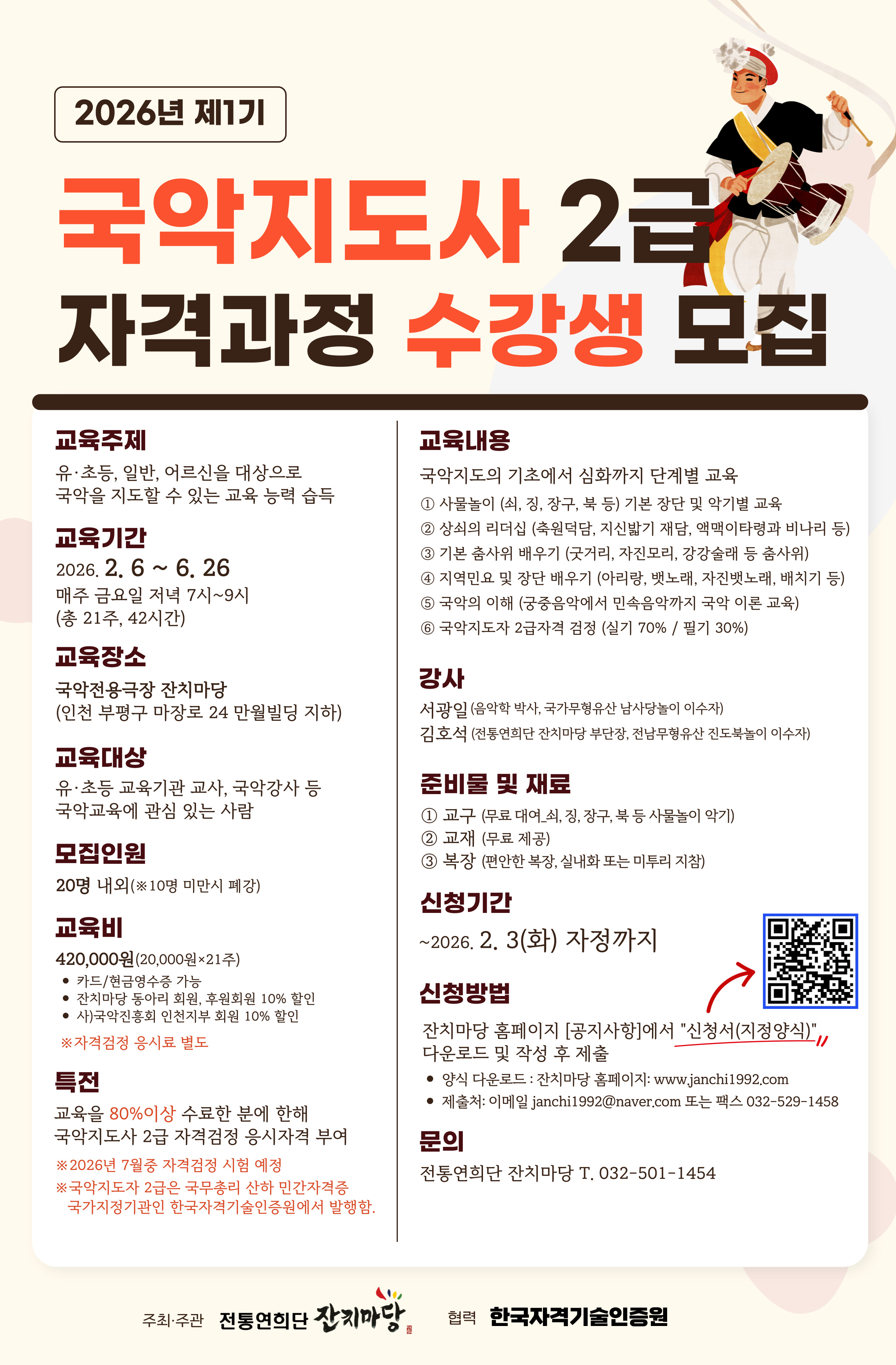 2026년 제1기 국악지도사 2급 자격과정 수강생모집