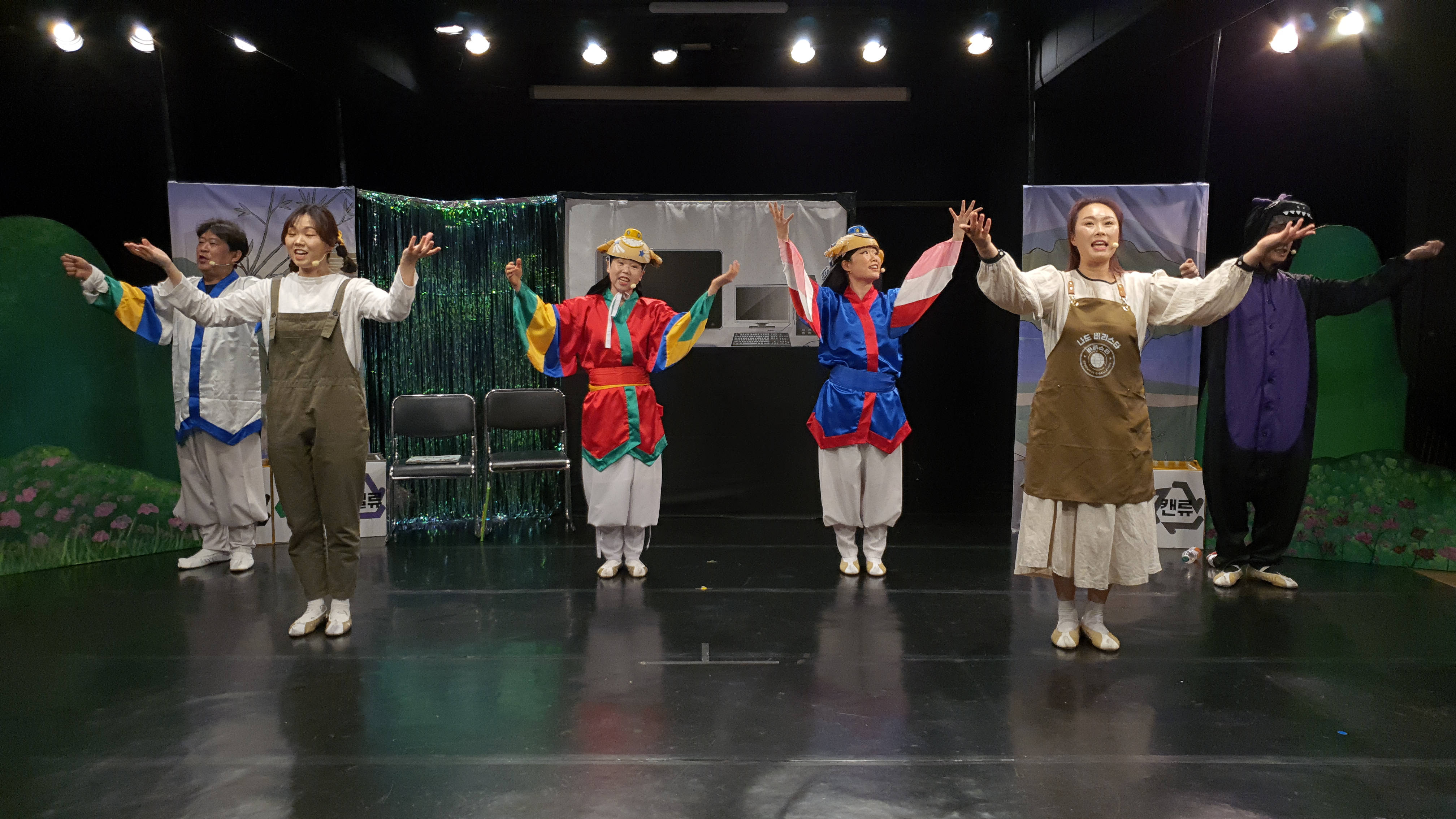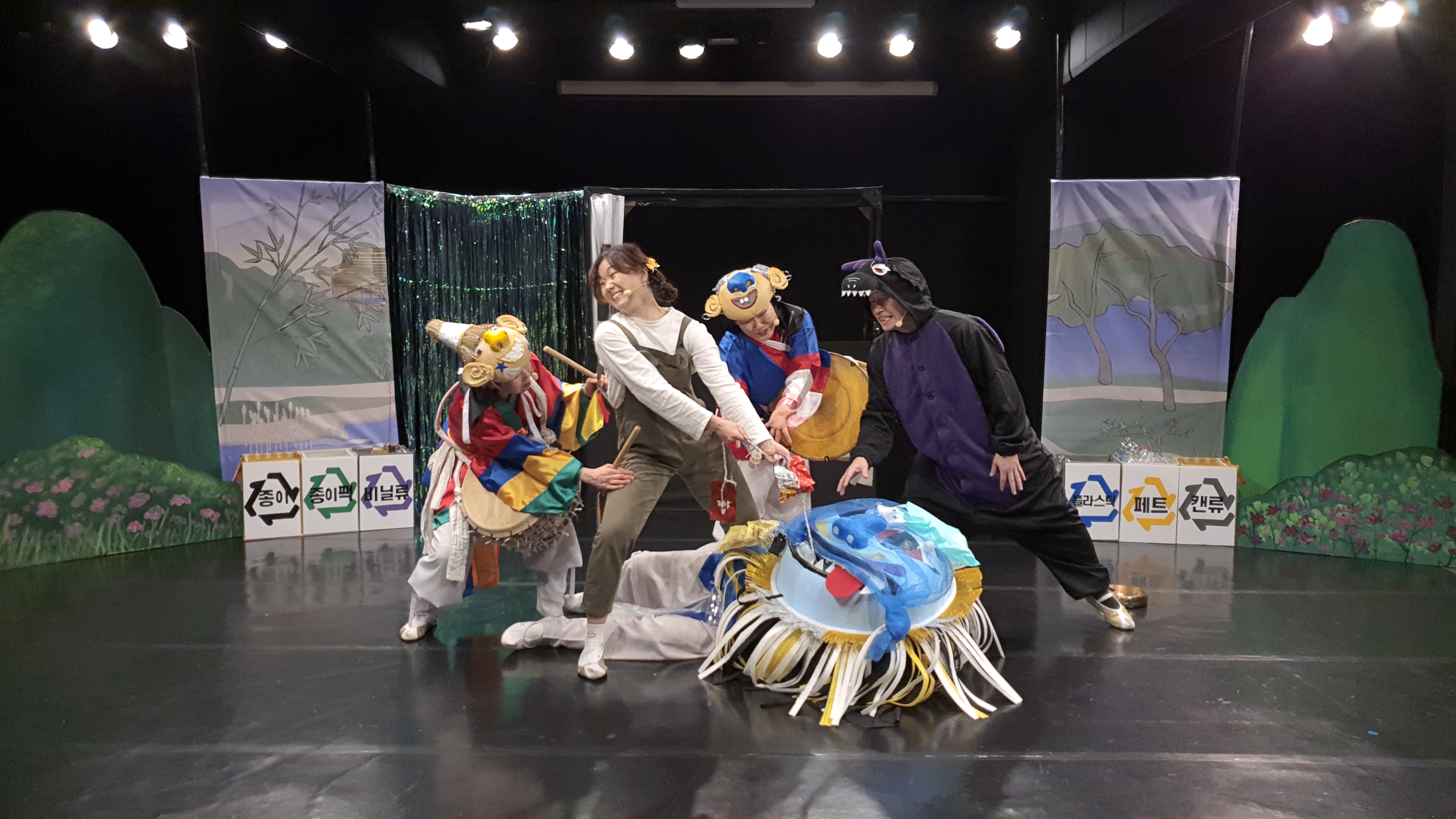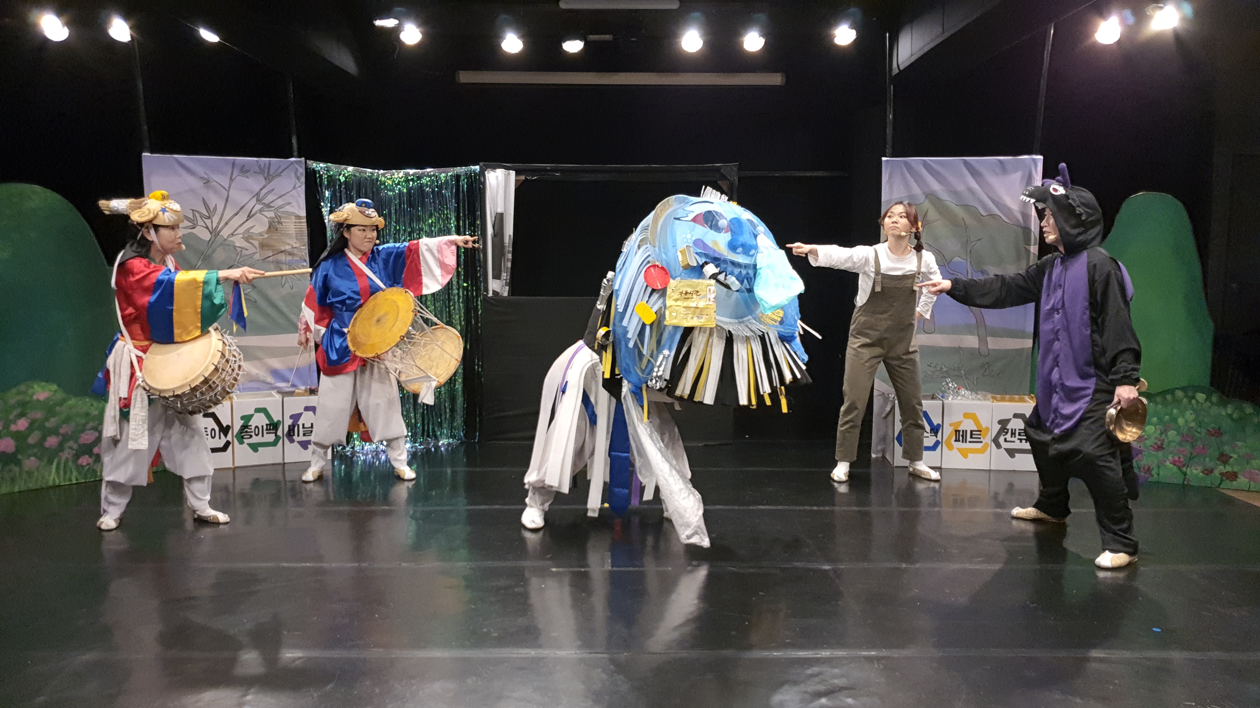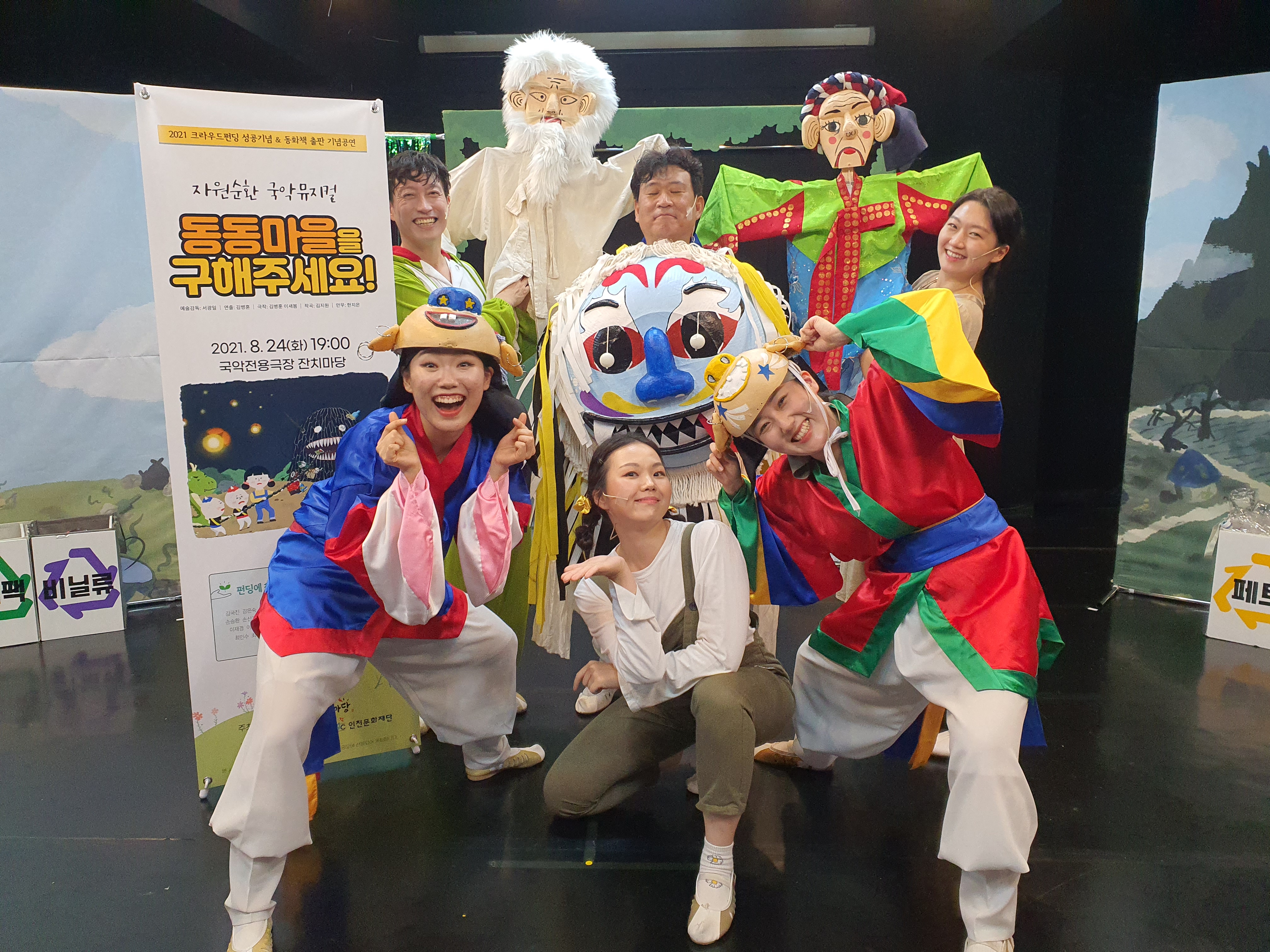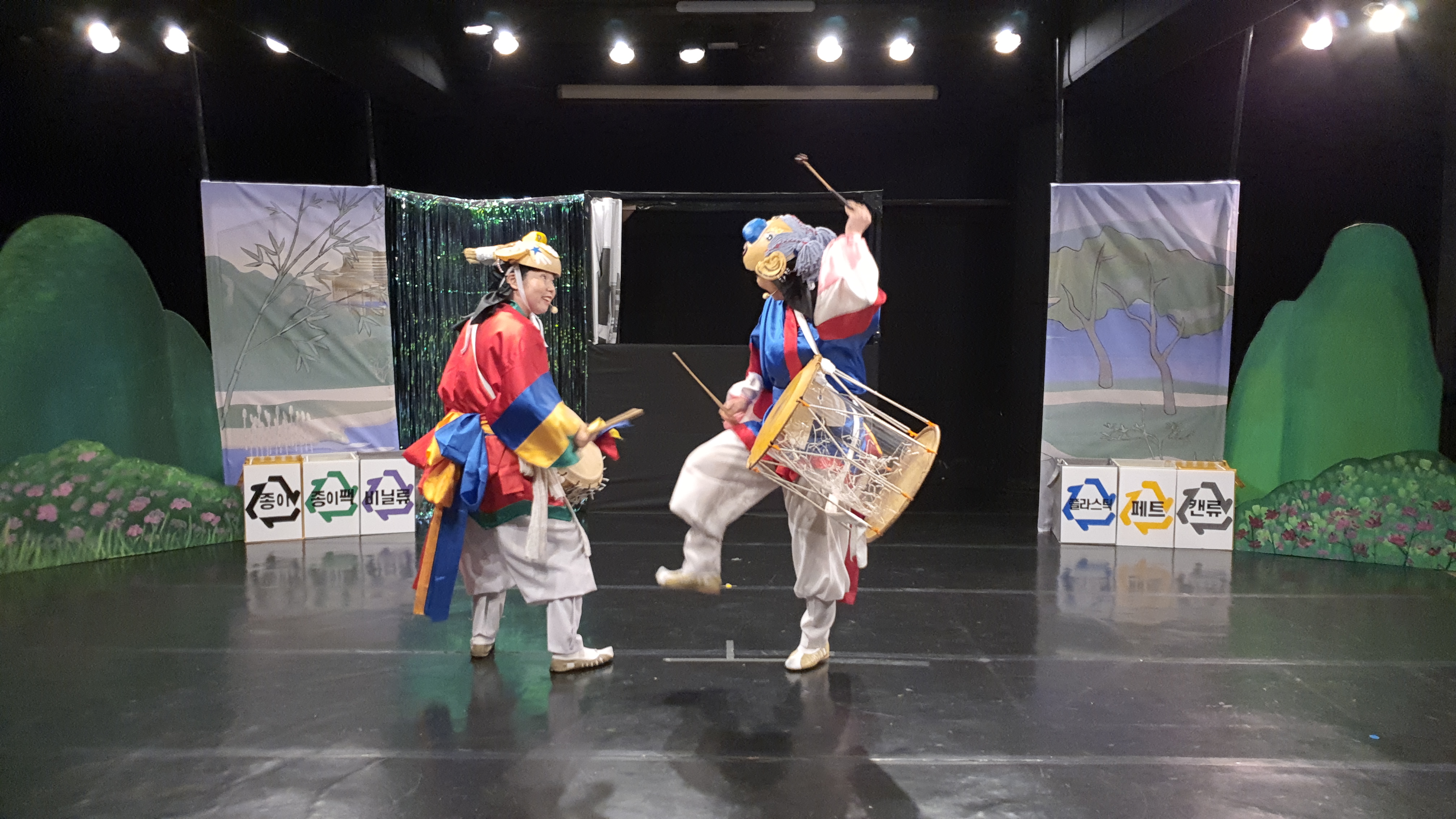 자원순환 국악뮤지컬 <동동마을을 구해주세요!>는 갈수록 심해지는 환경오염과 자원낭비에 대해 아이들을 포함한 우리 모두에게 노래하는 공연입니다. 단순히 환경파괴의 심각성에 대해 노래하지 않고, 지구를 지키기 위해 우리가 실생활에서 실천할 수 있는 다양한 방법들을 남사당 덜미(인형극), 땅줄타기, 진도북놀이, 설장고 등 신명나는 국악으로 표현합니다. 환경은 나 혼자 지킬 수 있는 것이 아니라 우리 모두가 함께해야 진정으로 지킬 수 있다는 것을 극의 노래와 안무로 즐겁게 알아갈 수 있도록 합니다.