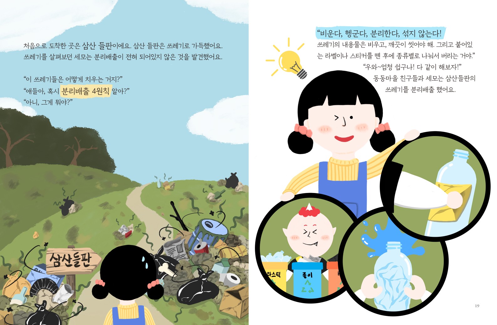 분리배출 4원칙을 집에서도 실천할 수 있도록 공연의 내용을 그대로 동화책에 담았어요.